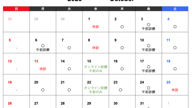 現在、診療日時が変則的となっています。ご注意ください。ご予約はネット予約、LINEが便利です。月・水・木・金曜日 9:30 - 17:30火曜日 9:30 - 11:00 オンライン診療のみ土曜日 9:30 - 15:00※5月23日 (金...